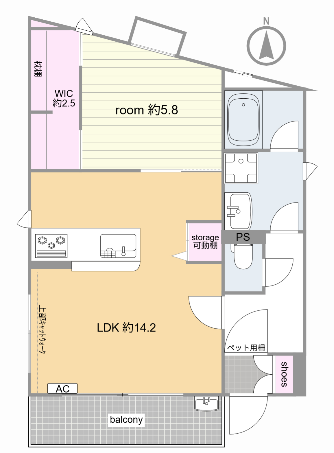 LDK 約14.2帖 洋室 約5.8帖